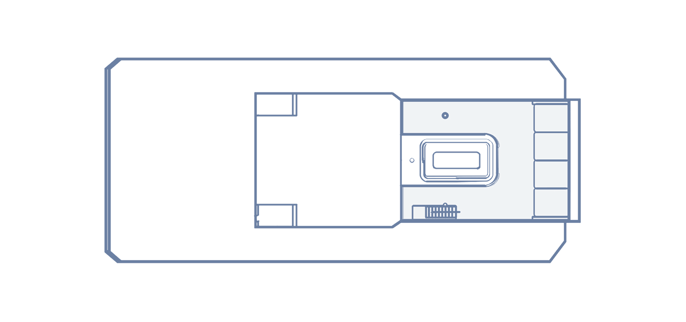 Monkey Island sits at the very top of the yacht and offers a large jacuzzi and sun deck. And our dedicated spa treatment room offers relaxing massages and treatments.