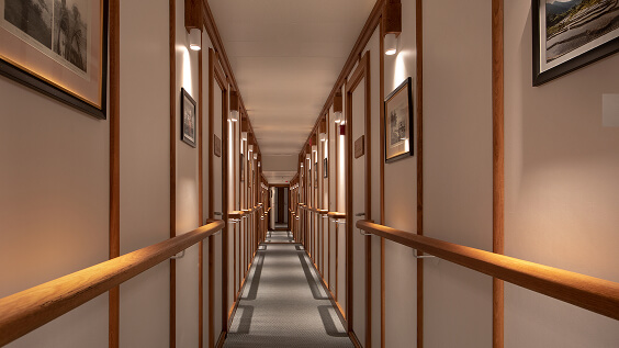 Walk through warm-lit corridors that lead to every guest suite.